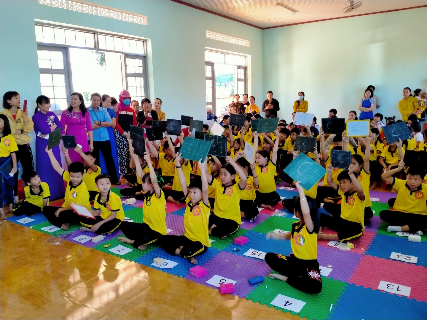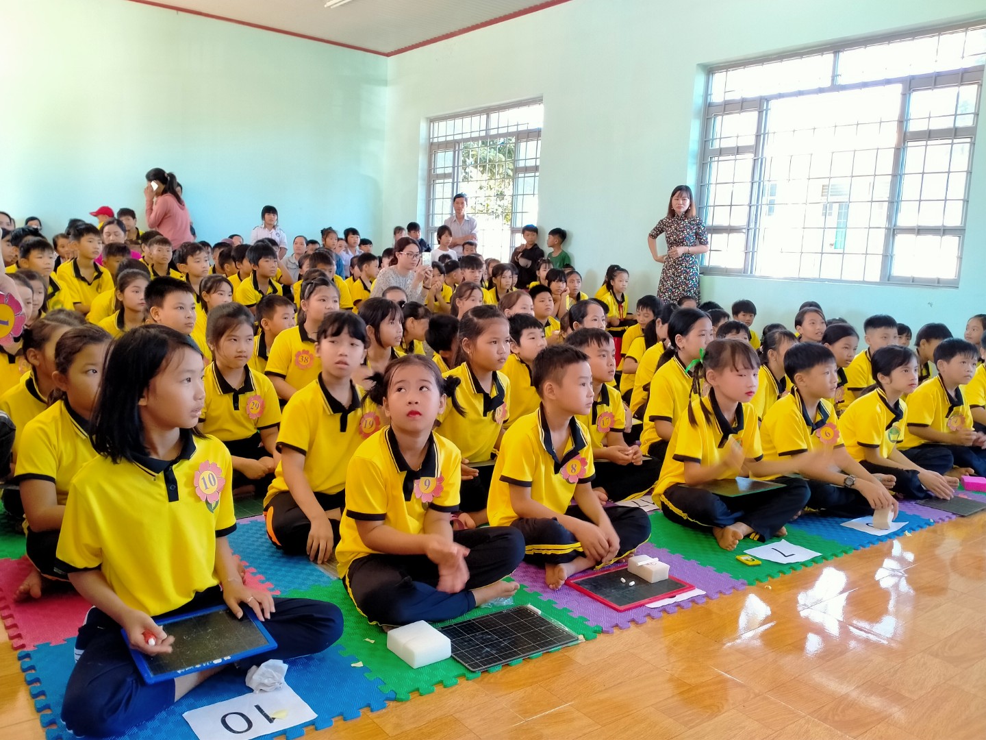 Để lập thành tích chào mừng ngày nhà giáo Việt Nam Liên đội trường Tiểu học Lê Thị Hồng Gấm phối hợp với các đoàn thể tổ chức ngày hội Học sinh nói tiếng Anh. Chương trình Rung chuông vàng cho học sinh khối 3 – 4 – 5